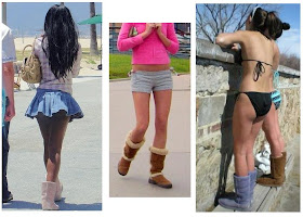 One trend that seems to be fairly new is the pairing of Fall/Winter'ish boots like UGGS, or the trendy boot slippers with summer wear.  I tend to consider myself pretty open minded when it comes to variations in style trends, but seriously, I think UGGS are UGG'ly when paired with mini skirts, summer shorts and worst of all bikinis!  It just looks sweaty!